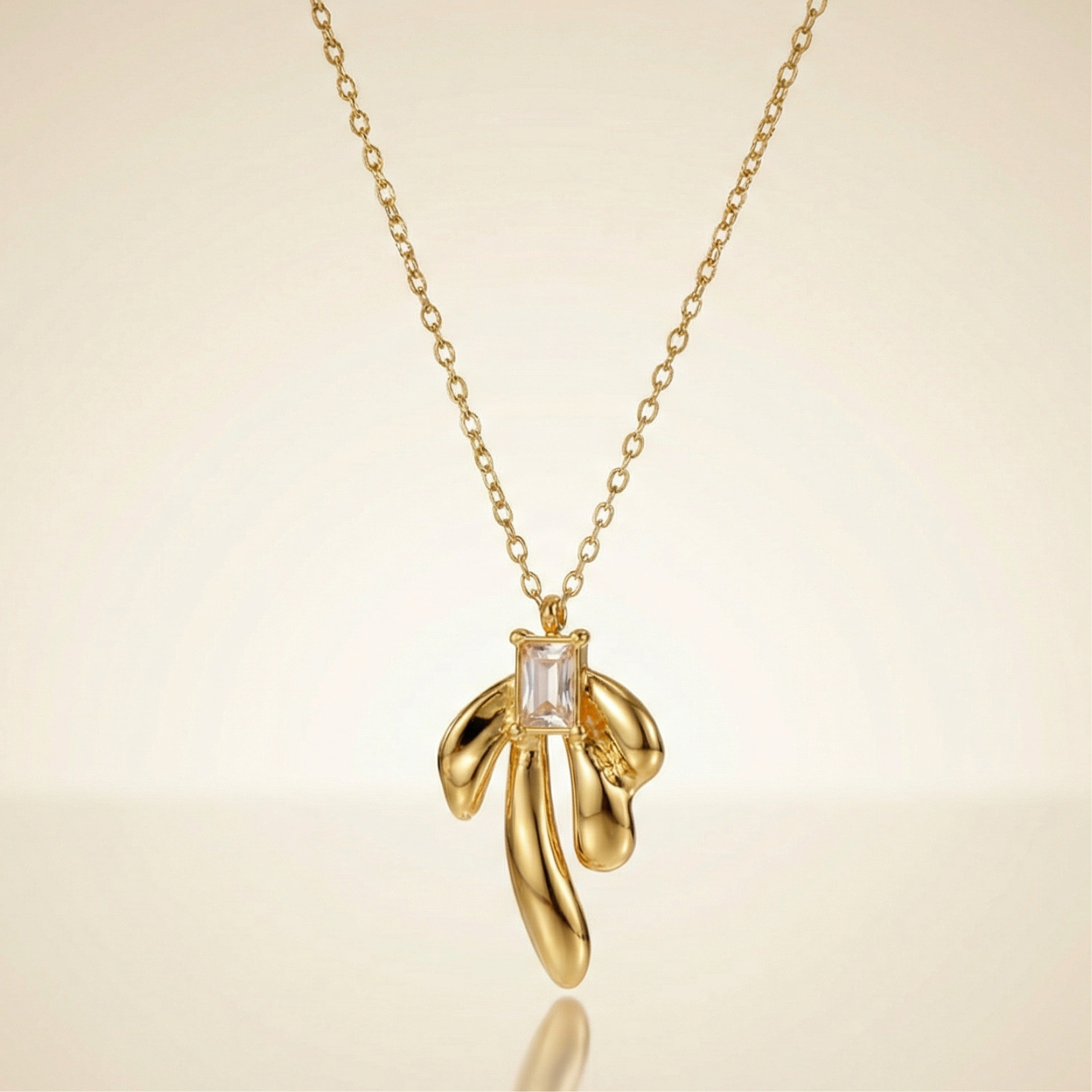 Designed to make a statement without saying too much, this Golden Butterfly Knot Pendant blends soft curves with a polished gold finish for a refined yet modern look. The sculpted knot-inspired design reflects light beautifully, while the crystal detail adds a subtle sparkle at the center. Crafted from durable 304 stainless steel and finished with 18K gold plating, this piece is made for everyday wear as well as special occasions.